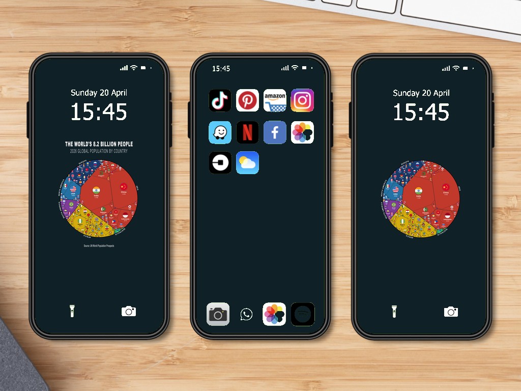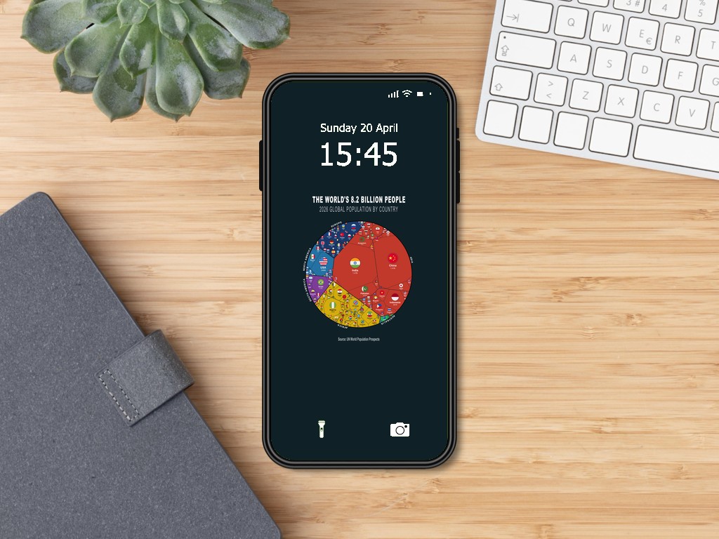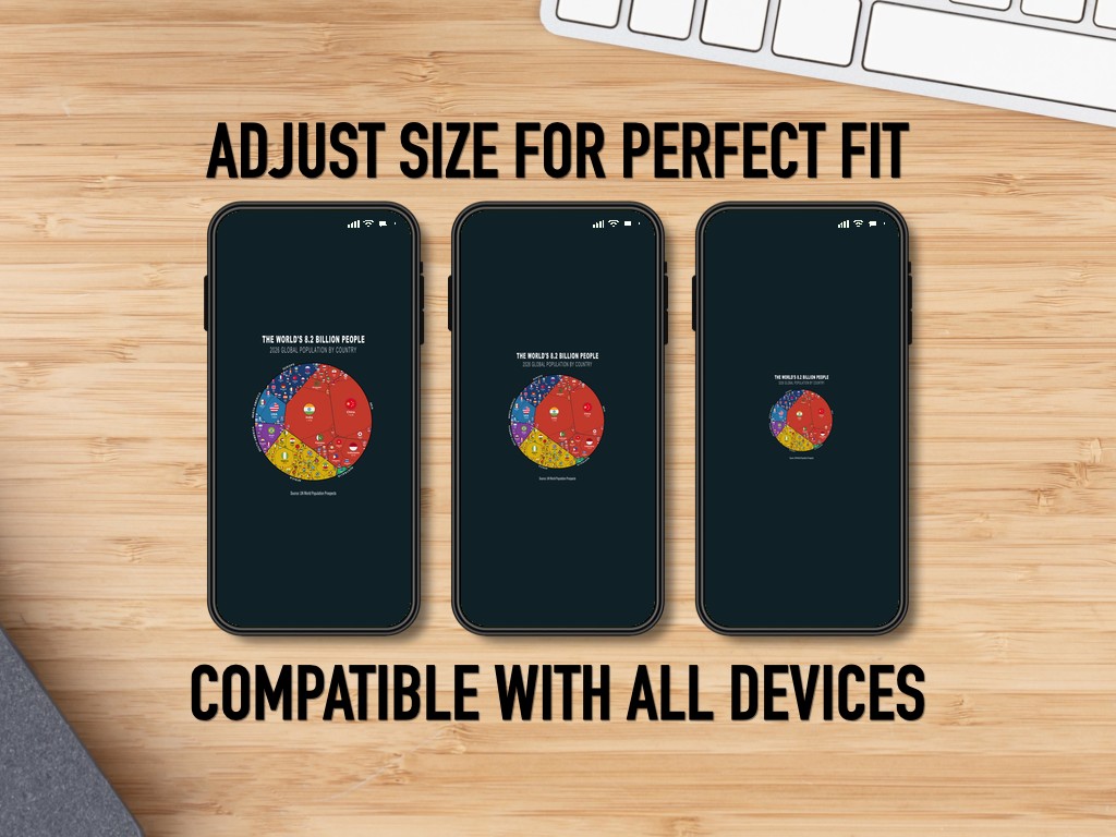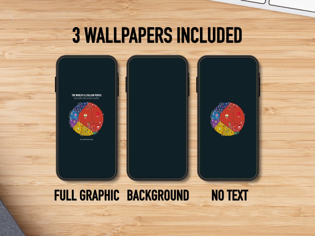Turn your phone screen into a conversation starter with this data-driven wallpaper set, showing the world’s 8.2 billion people.